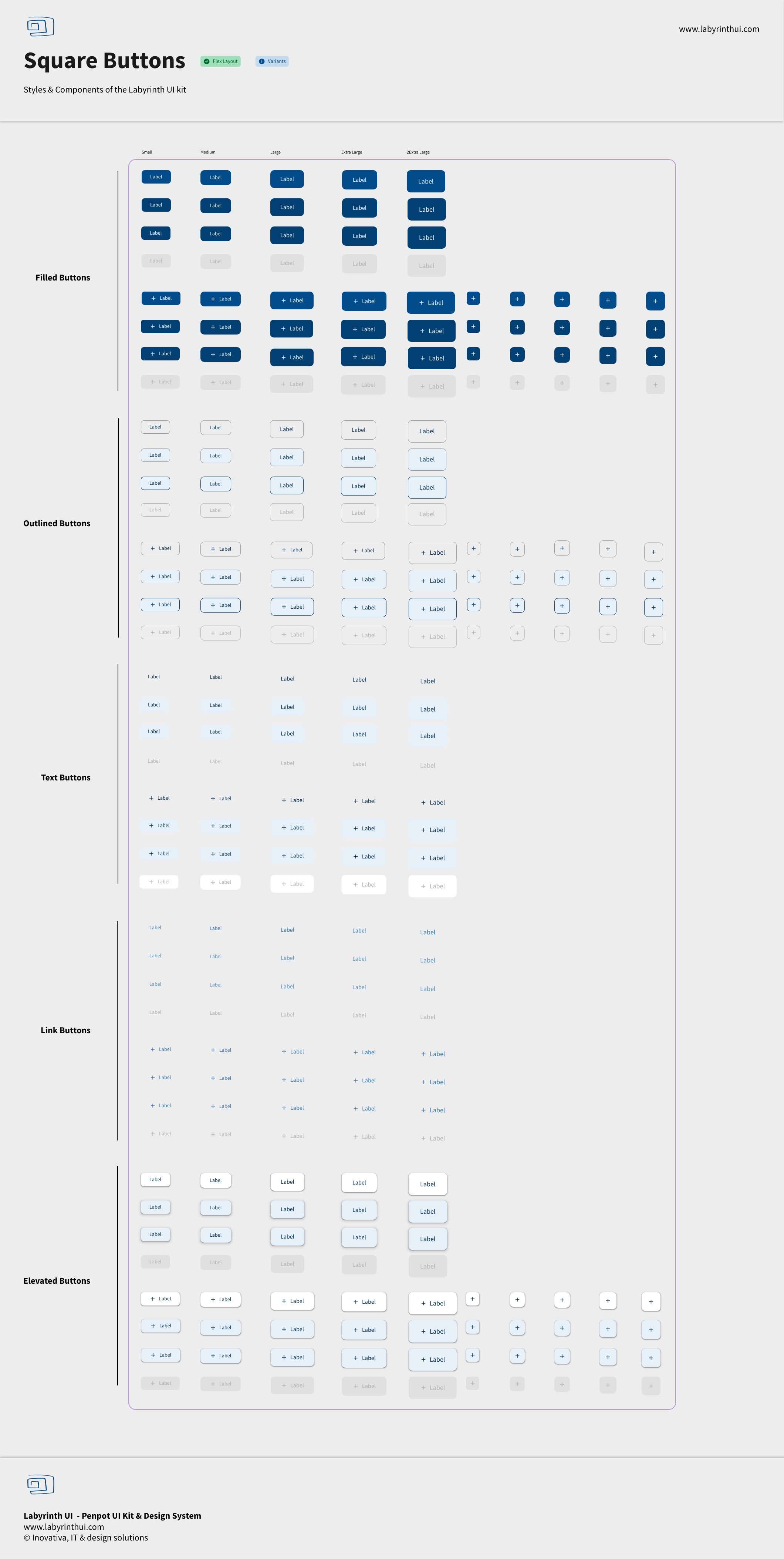 Labyrinth UI’s updated kit brings more than 2,000 Penpot-native components into the variants era. Now, building and customizing core screens is faster -choose from pre-built variant groups for buttons, alerts, inputs, navigation, and more.