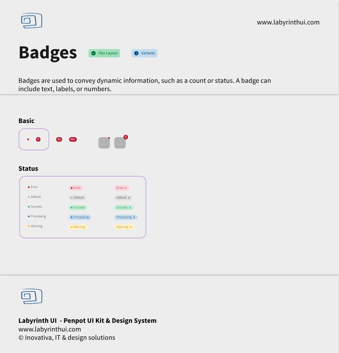 Badges are small, non-interactive UI elements that display a small amount of dynamic information, typically a numeric count or status, often overlaid on another component like an icon. They draw attention to new activity or important states without disrupting the user's flow.